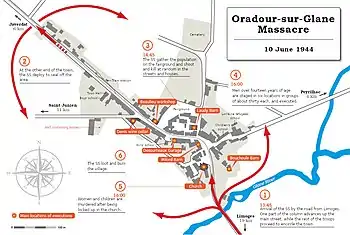 Sequence of events during the Oradour-sur-Glane massacre on 10 June 1944