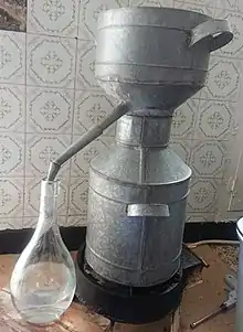 Orange blossom water serves two purposes in the Maghreb: one usage is as a perfume or freshener, usually given to guests to wash their hands upon entering the host house or before drinking tea. It is put in a special silver or metal container, recognizable in the typical Maghrebi tea set. This old custom is fading away. It is still common in Algerian cuisine, Tunisian cuisine, and Moroccan cuisine, especially as an ingredient for traditional sweets and sometimes to aromatize drinks such as coffee.[6] In Argentina, which borrows a lot of culinary traditions from Italy, agua de azahar is used to add a particular aroma and flavor to pan dulce, the traditional panettone prepared during year end celebrations.