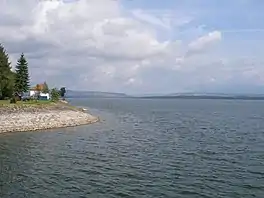 It was created by the construction of a dam between 1941 and 1953 on the former two sources of the Orava river. Several former villages had to be inundated for this purpose, including Hamri, Oszada, and Usztye.[1] Probably the best known of them was Slanica, Today, the reservoir is protected by the Horná Orava Protected Landscape Area.