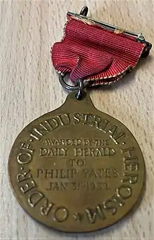 - ↑ "Daily Herald Order of Industrial Heroism medal". National Museum Wales. Retrieved 20 May 2019.
