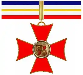 The Order of Merit of Mecklenburg-Vorpommern (German: Verdienstorden des Landes Mecklenburg-Vorpommern) is a civil order of merit, and the highest award of the German State of Mecklenburg-Vorpommern. The award is presented to men and women for exceptional performance over a long period of time, or an extraordinary individual performance for the benefit of Mecklenburg-Vorpommern. Founded in 2001 and first presented in 2002, the order may be presented to up to 20 persons per year.[1]