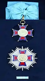 Order of the Republic of Serbia (Serbian Cyrillic: Орден Републике Србије, romanized: Orden Republike Srbije) is the highest state order of Serbia. The order is awarded by the decree of the President of the Republic on special occasions, typically at the ceremonies held on the Statehood Day. It is awarded for special merits in developing international relations between the Republic of Serbia and other countries, i.e. international organizations, as well as for outstanding merits in developing and strengthening peaceful cooperation and friendly relations between the Republic of Serbia and other states. It is awarded in the first class on a large necklace (heads of states), and in the second class on a ribbon (heads of states or head of governments).[1]