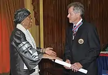 - ↑ "Liberia's President Confers Distinction on Several Citizens and Distinguished Personalities". mofa.gov.lr, website of the Ministry of Foreign Affairs. Government of the Republic of Liberia. Archived from the original on 19 December 2012. Retrieved 19 November 2012.