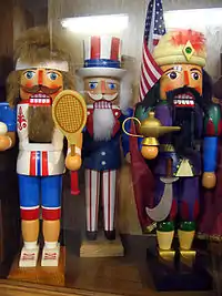 The development of this branch can not only be seen in the geographical distribution of products in "Ore Mountain Style", but also in the increasing diversity of motives for traditional objects. This diversity is clearly shown in the nutcracker museum in Neuhausen. Even in the Ore Mountains, new creations, which have little to do with products of the early days, are being developed. One of those products is an extremely slim, dark-skinned figure of an angel.[4] In the meantime, the trend is towards high-priced products. For example: a shop in Seiffen offers a Christmas Pyramid which costs more than €10,000. It is controversial whether the products manufactured in the Ore Mountains area can still be marked as "handcrafted" even though more and more work steps in the production are carried out by machines.