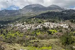Oreino (Greek: Ορεινό) is a small village in Lasithi regional unit on Crete, Greece. It is situated 28 kilometers northeast of Ierapetra and lies 10 kilometers from the Cretan south coast. As of 2011, it is part of the Ierapetra municipality. It is situated at 650 meters above sea level ('oreinos' means mountainous in Greek), east of the Thrypti mountains, in an area rich in vegetation. A gorge with the same name is also part of the village and contained a neo-Byzantine church with frescos.