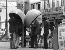 Orelhão (Portuguese pronunciation: [oɾeˈʎɐ̃w] Big Ear; plural: Orelhões Portuguese pronunciation: [oɾeˈʎõjs]), officially Telefone de Uso Público (Public Use Telephone)[1] is the name given to the protector for public telephones designed by Chinese Brazilian architect and designer Chu Ming Silveira. It was created on April 4, 1972 and it was initially used in the cities of Rio de Janeiro and São Paulo.[2] Today, they are present everywhere in Brazil, as well as in other Latin American countries such as Peru, Colombia and Paraguay, in African countries like Angola and Mozambique, in China, and in other parts of the world.