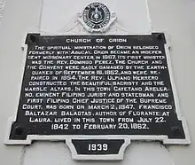 The San Miguel Archangel Parish Church, commonly referred to as Orion Church, is a 16th-century, Baroque Roman Catholic church located at Brgy. San Vicente, Orion, Bataan, Philippines. The parish church, dedicated to Saint Michael, the Archangel, is under the jurisdiction of the Roman Catholic Diocese of Balanga. A marker bearing the brief history of the structure has been installed in its façade by the National Historical Committee, precursor of the National Historical Commission of the Philippines. The current priest of the parish church is Fr. Abraham SP. Pantig.