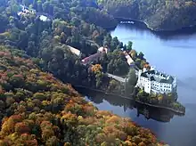 Nowadays, the castle once again belongs to the Schwarzenbergs. It is open to the public. Next to the castle is a castle park. Of the park's original area of 180 ha, 140 ha (350 acres) have been preserved, the rest was flooded during the construction of the reservoir in the 1960s. In the castle park there is the Schwarzenberg family tomb from the mid-19th century.[2]