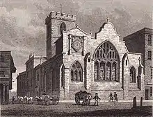 In 1606 Gibbons married Elizabeth Patten on 17 February.[25][36] Her father, John Patten, was a yeoman of the vestry in the Chapel Royal, and probably well acquainted with Gibbons, which would have helped to bring about the marriage.[37] When John Patten died in 1623, he made Gibbons his sole heir, residuary legatee and left 200 pounds for his children.[38] Later in 1606, Orlando graduated from Cambridge with the degree of Bachelor in Music.[38][39] Gibbons and his wife lived in Woolstaple (now Bridge Street) which was in the parish of St Margaret's, Westminster, the church where Gibbons's seven children—James, Alice, Christopher, Ann, Mary, Elizabeth and Orlando—would be baptised.[40][32]