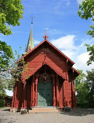 Ormøy Church is a church on the island of Ormøya in Oslo, Norway. It was built of wood in 1893 and has 200 seats. The church is listed by the Norwegian Directorate for Cultural Heritage. The architectural drawings was made by the German architect Bernhard Steckmest and built in a log technique, characterized by gothic and Swiss chalet style. The outer walls are painted red, while the interior is stained brown and oiled.