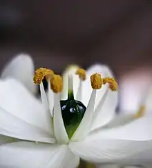 Ornithogalum arabicum is a species of star of Bethlehem native to northern Africa and southern Europe.[2][3] Common names include Arab's eye, lesser cape-lily, and Arabian starflower.[4][3]