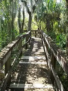One of the area's attractions is the Ortona Indian Mound Park, which preserves part of the Ortona Prehistoric Village, and the hiking trail through that area.[2] The prehistoric mounds, canoe canals and earthworks were constructed by Native Americans across a five-square-mile region along the north side of the Caloosahatchee River.[3] The site is located on SR 78, north of LaBelle.[4][5]