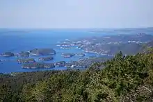 The southwestern part of Os included many small islands including Skorpo, Strøno, and Innerøya. The village area of Søre Øyane was located on several small islands off the mainland shore.