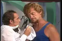![]() The Trapalhões: Mussum (green shirt), Zacarias (blue and yellow shirt) Dedé (blue shirt) and Didi (white shirt) | |