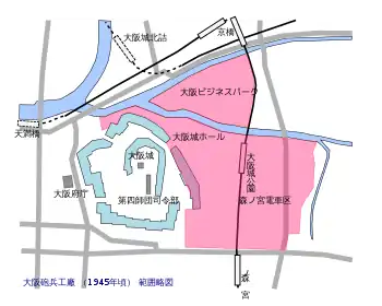 With the end of the Pacific War, the 75-year history of the Arsenal came to an end. After the war, the extensive grounds were partially overbuilt by commercial high-rise buildings, and partly used as a park ( Osaka Castle Park).[1]