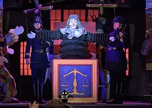 In the trial scene, the nursery transforms into the courtroom and the toys become the personages at the trial. Wilde is convicted of gross indecency and sentenced to two years' hard labour.