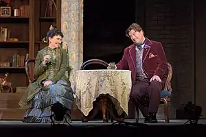 - [Revised version: After the conductor enters the pit, the opera begins with a "curtain speech" by Wilde at the opening night of his 1892 play Lady Windermere's Fan at the height of his fame.][2]