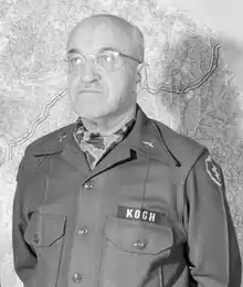 During the North African campaign, Koch served as chief of staff for one of Patton's subordinate task forces, Blackstone, which was commanded by Ernest N. Harmon.[7] Subsequently, Koch served as Patton's G-2 as Patton commanded II Corps in North Africa, Seventh Army during the Allied invasion of Sicily, and Third Army during combat in France following the Normandy landing.[7]