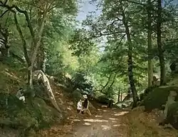 Impatient to receive a travel scholarship, he took off on his own in 1873 and went to Düsseldorf, but was not pleased with their teaching methods and later felt that he had wasted his time there. Finally, in 1874, he obtained a trave scholarship and went to Paris via Brussels. His feelings about his studies in Germany were confirmed when he visited the Salon and was exposed to the more Naturalistic styles prevalent there.[3] During his first summer in France, he lived in Montigny-sur-Loing and Marlotte, painting forest and river scenes.[4]