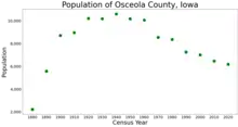 - ↑ "P2 HISPANIC OR LATINO, AND NOT HISPANIC OR LATINO BY RACE – 2020: DEC Redistricting Data (PL 94-171) – Osceola County, Iowa".