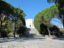 The Oslavia War Memorial is an Italian monument to soldiers who fell in battle during the battles of the Isonzo, particularly those who died during the taking of Gorizia in 1916. It stands on a 150m hill in the village of Oslavia, on the outskirts of Gorizia. The hilltop was on the front line as Austro-Hungarian troops defended the salient around Gorizia during the first, third and fourth battles of the Isonzo.[1]