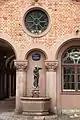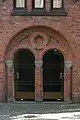The Oslo Bazaars were constructed between 1841 and 1859 and have facades of untreated red brick. They were designed in Romanesque Revival architecture style by Christian Heinrich Grosch who acted as the city's chief architect, planning engineer, and building inspector. Originally built for butchers who sold meat at the nearby Stortorvet market place, they were later expanded after their size proved insufficient. Construction continued along the same design in a semicircle to the east of the church, with more than 50 stalls in total.[3] [4][5]
