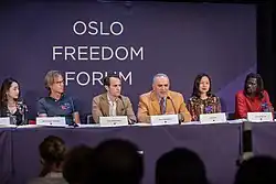 ![]() From the press conference of the 2018 Oslo Freedom Forum. | |