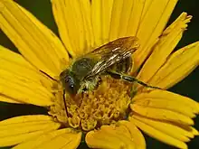 The bees are oligolectic, gathering pollen only from Asteraceae species.[7] However, adults have been observed feeding on flowers of various families of plants, mainly Reichardia picroides (Asteraceae), Echium angustifolium (Boraginaceae), Vicia villosa (Leguminosae), Euphorbia spp. (Euphorbiaceae), Salvia verticillata (Labiatae), Rosmarinus officinalis (Labiatae) and Morina persica (Dipsacaceae).[5]