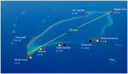 - ↑ F. Sarano; M. Plchon. "Morphology And Ecology Of The Deep Fore Reef Slope At Osprey Reef, (Coral Sea)" (PDF). Proceedings of the 6th International Coral Reef Symposium, Australia, 1988, Vol.2. Archived from the original (PDF) on 7 February 2016. Retrieved 7 February 2016.