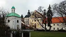 The monastery complex is located next to the castle park. The Piarist monastery was founded in 1644. The early Baroque complex includes the Church of the Annunciation from 1666–1673, the funeral Chapel of Saint Anne from 1644, the Chapel of Saint Florian from 1692–1693, and the Chapel of the Virgin Mary of Einsiedeln from 1709–1710. There are various expositions in the church and chapels, the convent building is closed to the public.[14]
