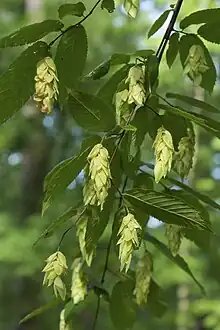 A hophornbeam branch with the characteristic hop-resembling fruits[1] in early summer