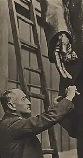 In his following years, he continued his studies at the Academy under the guidance of Josef Václav Myslbek, founder of modern Czech sculpting style. He later went to Paris to complete his fine arts education. His stay in Paris was crucial to him: while he was there he met Antoine Bourdelle, who influenced his distinctive style in his later works. In 1917, he became a professor at the School of Applied Arts in Prague, and from 1919, he was a professor at the Academy of Arts. His work was part of the art competitions at the 1912 Summer Olympics and the 1936 Summer Olympics.[2]