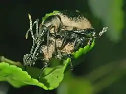 These beetle are polyphagous. The soil-living larvae feed on the roots of many host plants, while the adults feed on leaves and have nocturnal habits.