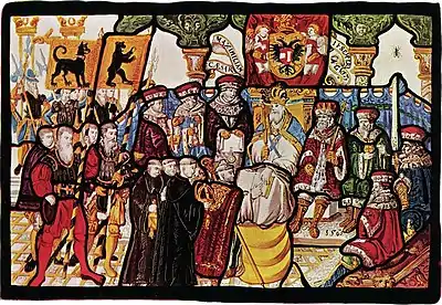 Emperor Maximilian II bestows the imperial regalia on Otmar Kunz