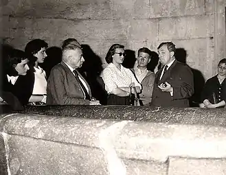 In 1957, Höfler was appointed Professor and Chair of German Language and Old German Literature at the University of Vienna.[2] Gschwantler accompanied him as an assistant, and would eventually become a full professor. A talented and highly popular teacher, Höfler taught and supervised a generation of very influential scholars at Vienna, including Helmut Birkhan, Hermann Reichert, Peter Wiesinger, Erika Kartschoke, Edith Marold, Klaus Düwel, Waltraud Hunke and Wolfgang Lange. A group of Höfler's most dedicated students, which included Gschwantler, Birkhan, Wiesinger and Kartschoke, were affectionately known as the Drachenrunde. Highly sociable, Höfler played an important role at the university as a host of seminaries and parties at his vineyard, and arranged memorable excursions to Ravenna and other places, which were attended by his students and fellow professors and friends, such as Richard Wolfram and Eberhard Kranzmayer.[7][8][9]
