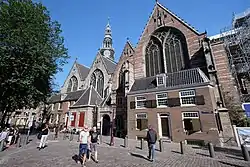 The Oudekerksplein (English: Old Church's Square) is a square in the centre of Amsterdam. It is named after the 14th-century church Oude Kerk which dominates the square. The Oudekerksplein is wedged between the Warmoesstraat street and Oudezijds Voorburgwal canal. From the square, the Oudekerksbrug bridge crosses the Oudezijds Voorburgwal canal and continues eastwards, through the Oudekennissteeg and Molensteeg alleys, towards the Oudezijds Achterburgwal and Zeedijk.