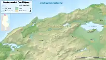 The Oued Sejenane flows into the Mediterranean near Bizerte and flows past Ichkeul National Park, and the forest of Sajane.[1] It is located at Latitude: 37 ° 10'11.99 " Longitude: 9 ° 36'47.2 "[2] and is 252 meters above sea level.