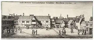 Two of Oughtred's students, William Forster and Richard Delamaine the elder, are concerned with the story of this book.[55] As instructor to the Earl of Arundel's son, Oughtred had the use of a room in Arundel House, the Earl's residence in the Strand, in London. He gave free instruction there to Richard Delamaine, whom he found to be too dependent on mathematical instruments to get a proper grasp of the theory behind them. Another student of his, Forster, who came to him as a beginner during the 1620s, was therefore taught without reference to instruments so that he should have a true grounding.[56] However, during the long vacation of 1630 Forster (who taught mathematics from a house in St Clement Danes churchyard, on the Westminster side of Temple Bar, in the same locality as Elias Allen's shop), while staying with Oughtred at Albury, asked him about Gunter's Ruler, and was shown two instruments used by his master, including Oughtred's circular slide rule.[57]