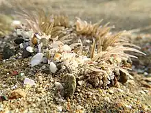 This species can be recognized by gravel, bits of shell or coarse sand that it attaches between its tentacles.[3]