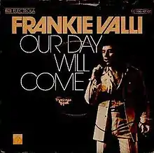 American singer Frankie Valli recorded and released "Our Day Will Come" in 1975. His rendition features Patti Austin on accompanying vocals. Cash Box said that "minimum use of strings on top as the artist’s cutting sound and super-fine alto sax provides that icing that balances out the broad bottom indigenous to disco dance depots."[11]