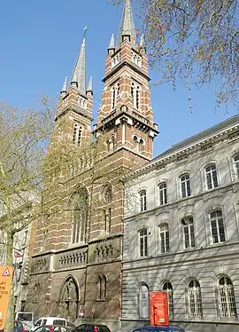 In 1871, the capacity of the school again needed to be increased so land was bought in a series of streets in the centre of Antwerp called 'the Avenues'. There, they got the architect Jules Bilmeyer to design the new school. It was completed in 1875. Twelve years later, he also completed the building of the church next door to the school, Our Lady of Grace Church (Dutch: Onze-Lieve-Vrouw van Gratie Kerk).[3]