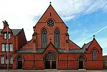 Our Lady of Mount Carmel is a Roman Catholic Church on High Park Street in Dingle, Liverpool. The church was built when the parish population had outgrown the nearby Church of St Patrick on Park Place. Initially, from 1866, a chapel dedicated to Our Lady of Mount Carmel was used in the school. The church proper opened on 21 July 1878.