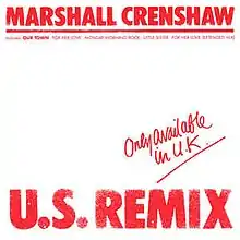 Though not released as a single, "Our Town" was released as the titular lead track to a "US Remix" EP that was released in the UK. This EP featured remixed versions of songs from Field Day done by John Luongo, rather than Field Day producer Steve Lillywhite, as well as a cover of Elvis Presley's "Little Sister."[4] Crenshaw later disavowed the remixes and said, "I had no participation in that and it didn't come out anything like I wanted it to. I wanted to do remixes with a guy named François Kevorkian, who did a lot of remixes that were psychedelic-sounding. I wanted him to take the tracks further out than Field Day. The guy Warners ultimately got to do it was sort of pushed into taming the sound."[5]