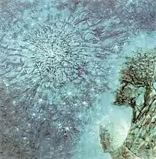 After the dissolution of the original Love lineup following the release of Forever Changes (1967), Arthur Lee assembled a new band, including guitarist Jay Donnellan, drummer George Suranovich and bassist Frank Fayad.[1] The quartet recorded 27 songs, ten of which were released by Elektra Records as Four Sail in August 1969, with the remaining songs being issued by Blue Thumb Records as a double LP, Out Here, that December.[1] The title came from the name of the cover painting, created by Burt Shonberg.[5]