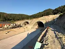 Ovčiarsko Tunnel is a highway tunnel under construction in northern Slovakia near Žilina, on the D1 highway. The tunnel is planned to be 2,367 m long in the south and 2,360 m in the north.[1] An exploration gallery was driven from 1996 to 1998. Originally, the tunnel was planned to be built with all southern Žilina's bypass between 2010 and 2014 as a PPP project. But the new Iveta Radičova's executive cancelled it in 2010 and made a decision to be financed by EU funds and the state budget. The construction started in July 2014 and the north tube was pierced in April 2016. Perforation of the south tube is planned in July 2016. The general contractor of this tunnel is Uranpres.