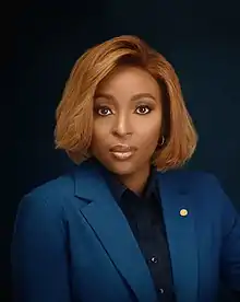 In March 2020, she became the President/Chief Executive Officer of Transcorp[14] after her appointment to the role, she became the youngest CEO on the Nigerian Stock Exchange and also the youngest and first female to occupy the position at Transcorp Group.[15][16][17]
