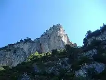 The cave's main entrance is 5–6 m (16–20 ft) above the canyon floor, where at this place the canyon walls rise up 450–500 m (1,480–1,640 ft) high. There exist three more entrances high above the cave's main entrance.[1] The cave has two interconnected levels, and has a meandering shape.[3]