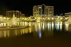 City Center at Oyster Point is a business district in the Oyster Point section of Newport News, Virginia. It is a 52-acre (210,000 m2) high density mixed-use development that has 230,000 sq ft (21,000 m2). of Retail Shops and Restaurants and 1,000,000 sq ft (100,000 m2). of Class A office space. It is inspired by the maritime history of the city, landscaped in a southern living style with views to a 5-acre (20,000 m2) fountain.