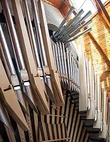 The next organ with special design was built in 2013 for the church of Aveiro, in Portugal. This piece is the second biggest organ in Portugal.[1][4]