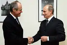 Péter Medgyessy (Hungarian pronunciation: [ˈmɛɟːɛʃi ˈpeːtɛr] ⓘ; born 19 October 1942) is a retired Hungarian politician who served as Prime Minister of Hungary from 27 May 2002 to 29 September 2004.[1] On 25 August 2004, he resigned over disputes with coalition partner Alliance of Free Democrats, but remained as acting prime minister for a 30-day period as required by the Constitution, and a few additional days until his successor Ferenc Gyurcsány was confirmed by the National Assembly.[2][3]